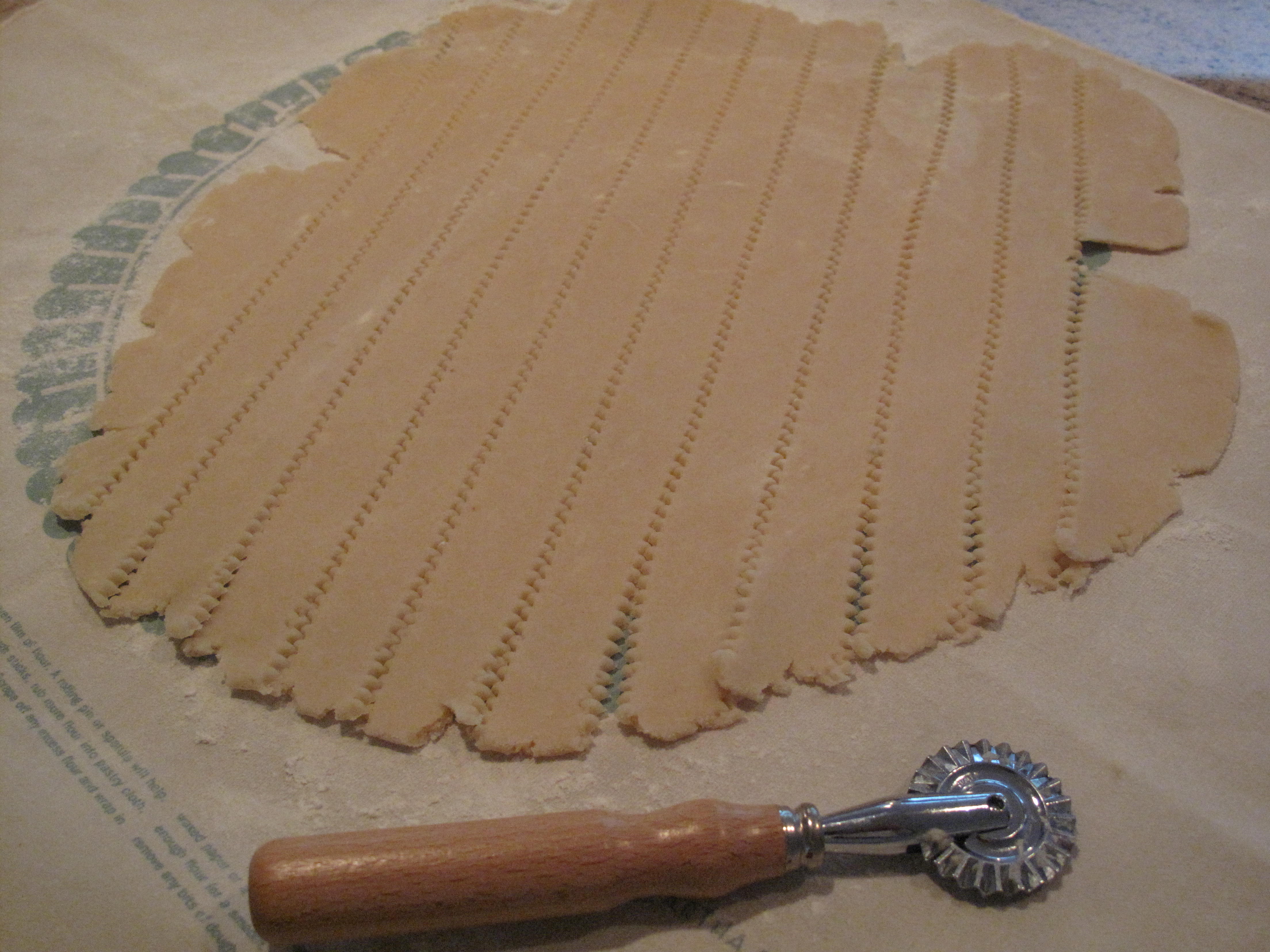 Roll out second dough disk on a lightly floured surface into another 13-inch round. Cut into fourteen 1/2-inch-wide strips. Spoon filling into crust. Arrange 7 dough strips on top of filling, spacing evenly. Form lattice by placing remaining dough strips in opposite direction on top of filling. Trim ends of dough strips even with overhang of bottom crust. Fold strip ends and overhang under, pressing to seal. Crimp edges decoratively. Brush glaze over crust. Place pie back into refrigerator so that it can chill again for several minutes. Chilled pie dough bakes the best.