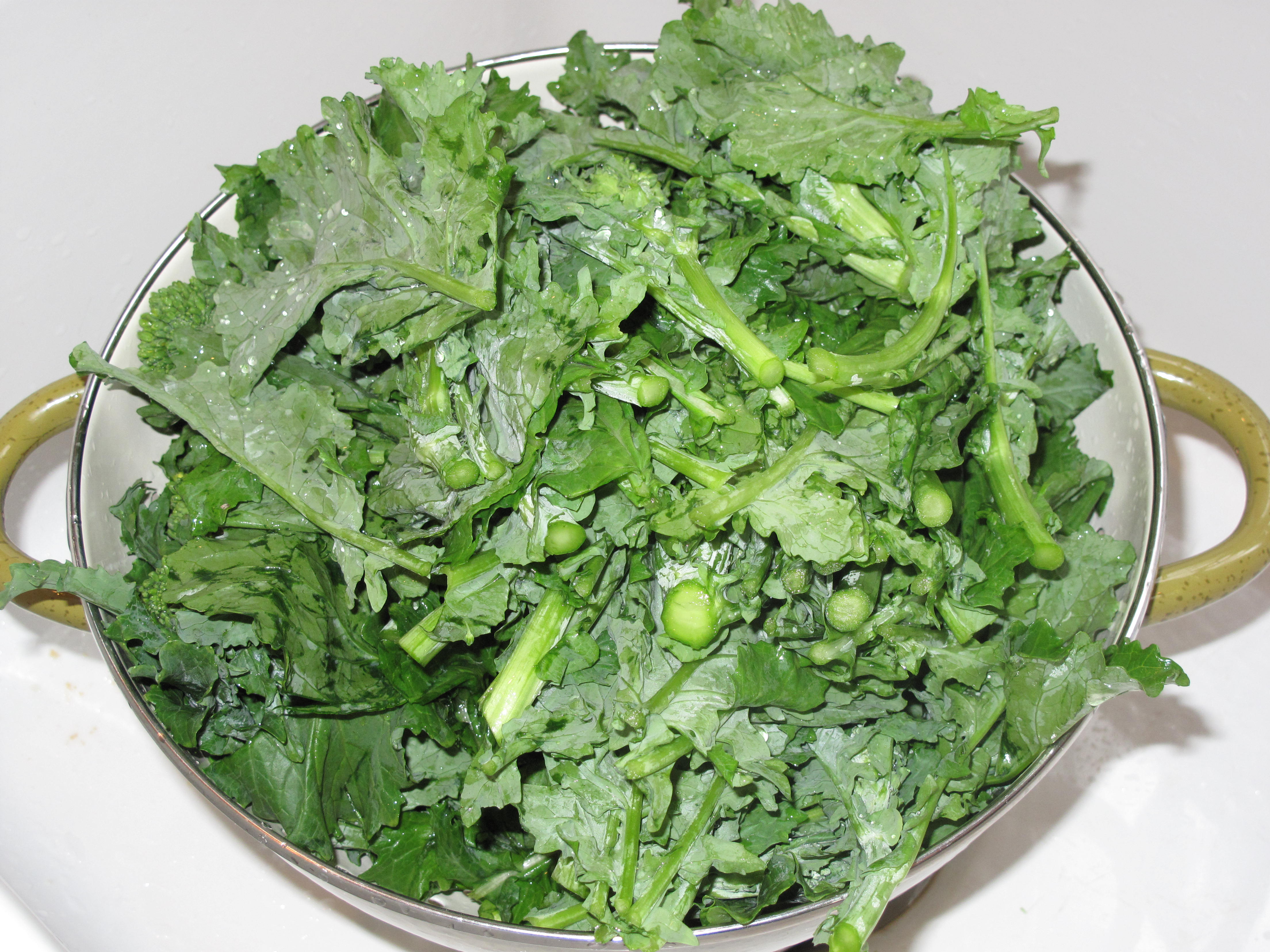 - 2 large heads of broccoli rabe. I found organic and super fresh. We beg you to do the same. Your body doesn’t need the chemicals.