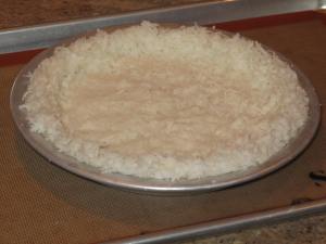 Place a 9-inch pie plate on a parchment-lined rimmed baking sheet. Press coconut mixture into bottom and up sides of pan to form crust, leaving top edges loose and fluffy.