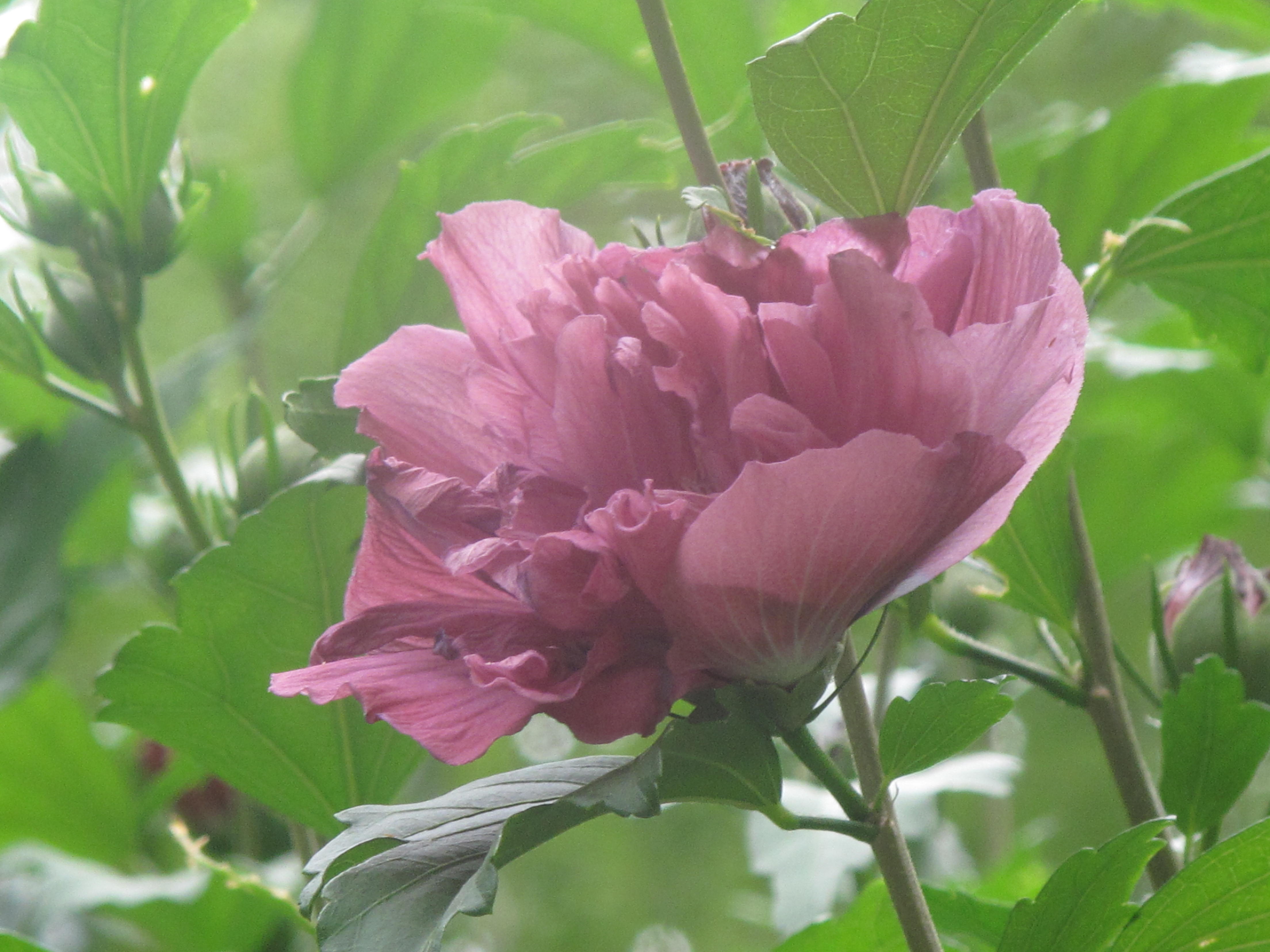 686 Published July 18, 2011 at 4416 × 3312 in More What’s Blooming – A Virtual Garden Tour ← Previous Next → A hibiscus bloom is part of a four tree cluster in our back yard. Two trees bloom in pink and two trees bloom in white.