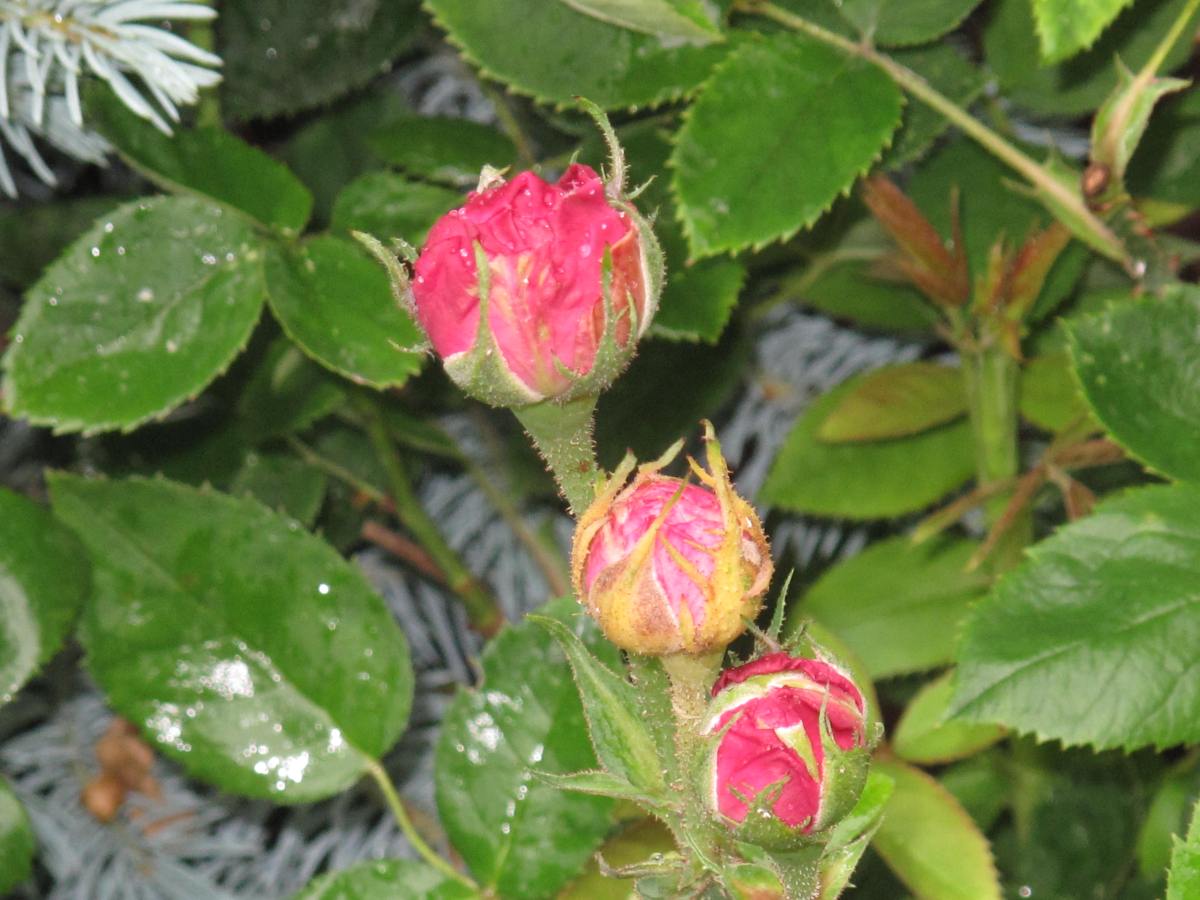 July 9, 2012 076 Published June 10, 2012 at 4416 × 3312 in What’s Blooming – Our First Virtual Garden Tour of 2012 ← Previous Next → A trio of rose buds just about ready to bloom. One of the original roses that was here when we moved to Glen Road seven years ago.