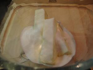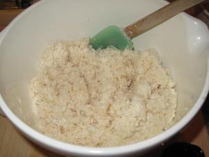 The beginning–the flour and cooled, melted butter combined and then the garlic cloves added before turning up the heat: