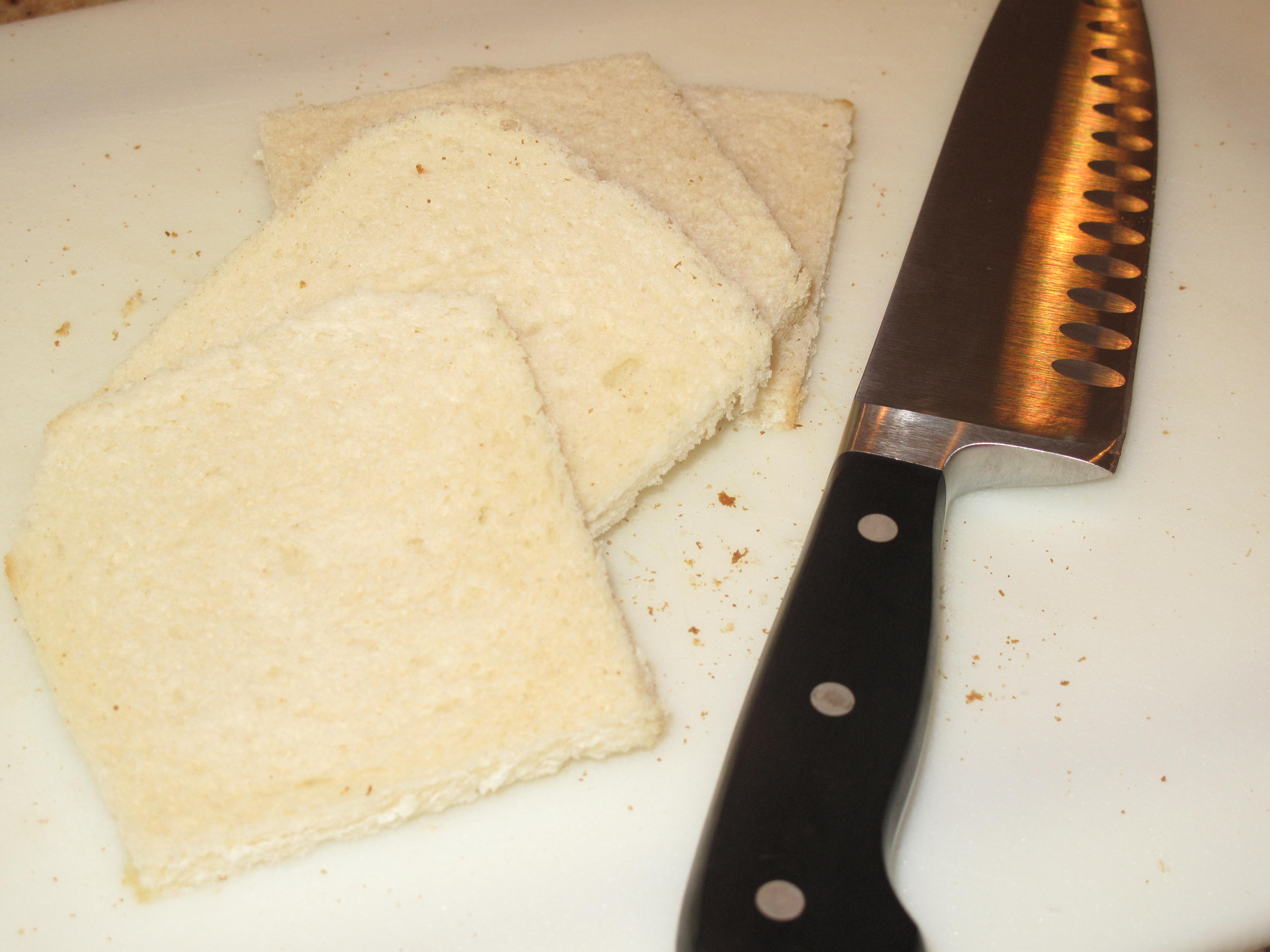 • 4 slices Pepperidge Farms white bread, crusts removed and torn into large pieces (I just know it is the best!!)