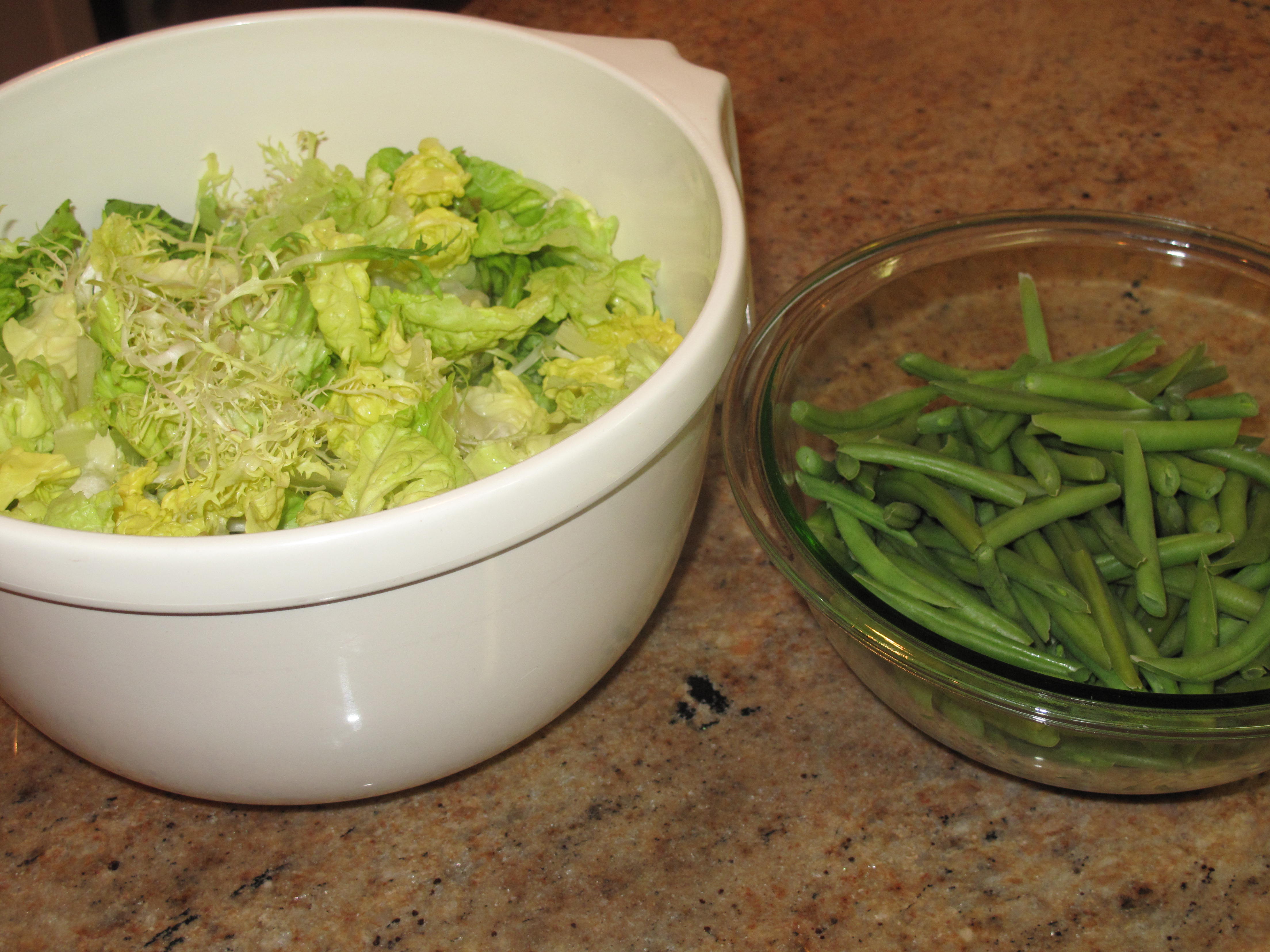 This is our first harvest of green beans from the garden.  What should we do with them was the question?  I had an answer for that, based on a recent recipe I saw on a cooking channel.  Fresh green beans are perfect for a chicken paillard with fresh greens and beans.  We had been on such a food overload since our early July 4th party where we ate an incredible amount of food over the span of the event.  This recipe was perfect for us in the sense it wasn’t heavy, wasn’t grilled and was quick and easy.  It also called for very fresh ingredients, which is always a plus.  Even on the 4th of July, I was able to get to a fresh farmer’s market that was open for some of the other ingredients needed that I couldn’t get out of our garden.  If you are lucky enough to find a place that sells fresh, organic produce, it is well worth the price.  The fresh tastes can’t be beat.  This is the perfect Summer go-to recipe and hit the spot for our 4th of July dinner.