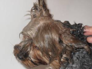 Finally, I just surrender and let nature (and soap and water) takes its course. When I’m wet, I look about 10 pounds lighter. See how sad my little face looks in this one.