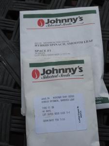Again, I used the same spinach seed as I did a year ago: one is a traditional smooth leaf and one a savoy or curly leaf.