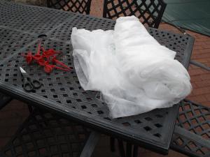To protect the seeds during the harsh Winter, I again used a floating row cover pinned down by pegs to buffer the planted seeds from the elements.